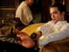 Contemporaneamente Eric sperimenta la fascinazione crescente per ciò che solitamente tiene lontano attraverso vetri oscurati, guardie del corpo, pannelli di sughero: l’esterno, la morte, la violenza fisica. Con un certo compiacimento osserva l’aggressione splatter al presidente del Fondo Monetario Internazionale, e il sorrisetto beffardo affiora anche quando viene sorpreso dai contestatori armati di topi morti. Il vuoto emozionale permea la limousine: i momenti di vulnerabilità sono segnati da motivazioni egoistiche o incomprensibili, relegati in due tra le migliori sequenze del film, la visita medica con spettatrice e il funerale del rapper tanto ammirato da Packer da essere colonna sonora del suo ascensore. Certo, parlando di fisicità, il sesso è previsto anche prima, quello esposto e visibile con le amanti e quello invisibile rimandato e parlato, caratteristica di una vita coniugale potenziale ma di fatto inesistente (la moglie Elise è l’algida Sarah Gadon). L’esperienza del matrimonio (di convenienza) sta in un altrove inaccessibile, assieme alla merce, ai soldi, agli sfruttati e agli sfruttatori nelle loro oggettive corporeità, alla vita stessa: Eric Packer sta al di sopra di tutto, almeno finora.